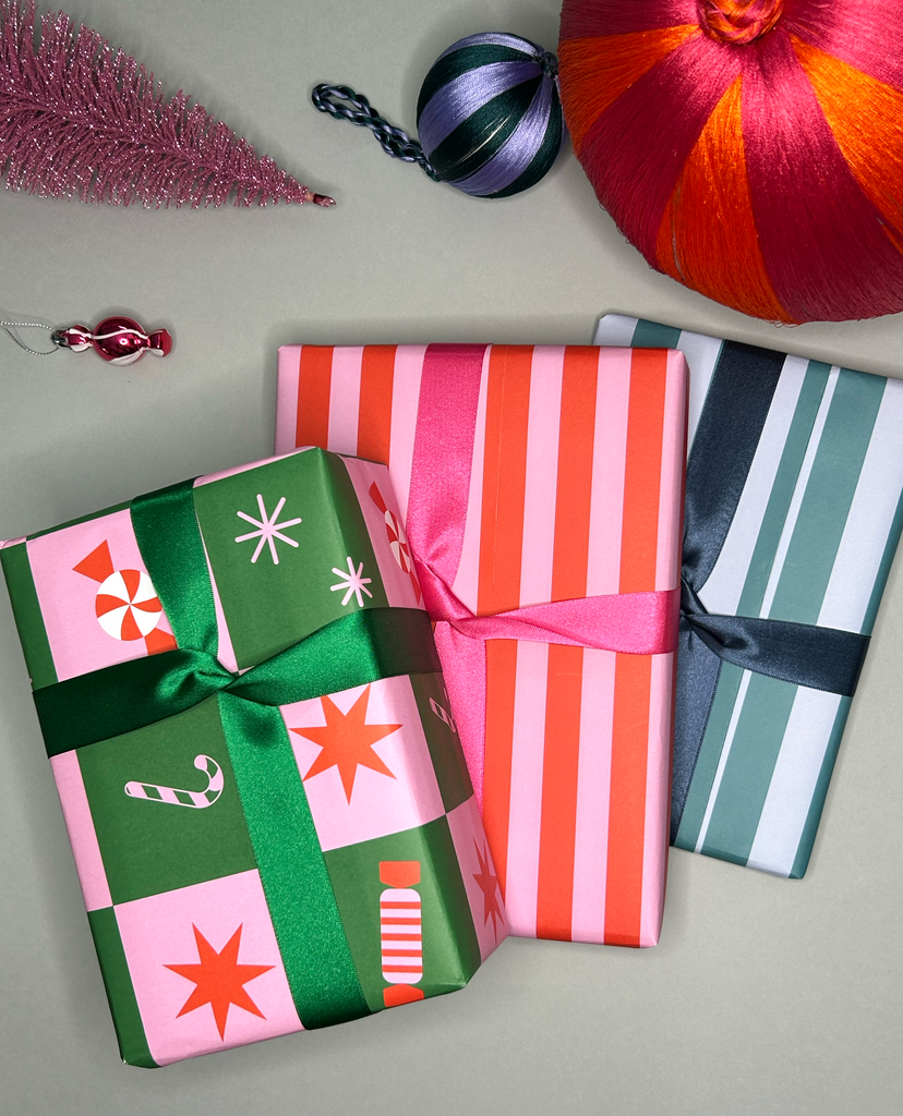Stripey Red and Pink - wrapping paper